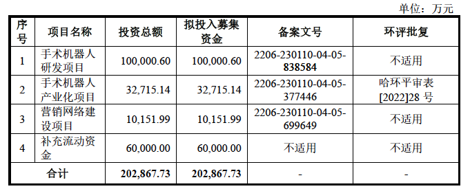 思哲睿此次IPO擬募集20億元,將用于手術機器人研發(fā)項目、手術機器人產(chǎn)業(yè)化項目、營銷網(wǎng)絡建設項目以及補充流動資金。這些項目建設周期均在2~3年左右,尤其值得注意的是,思哲睿生產(chǎn)線建設,也就是手術機器人產(chǎn)業(yè)化項目建設周期也長達24個月。