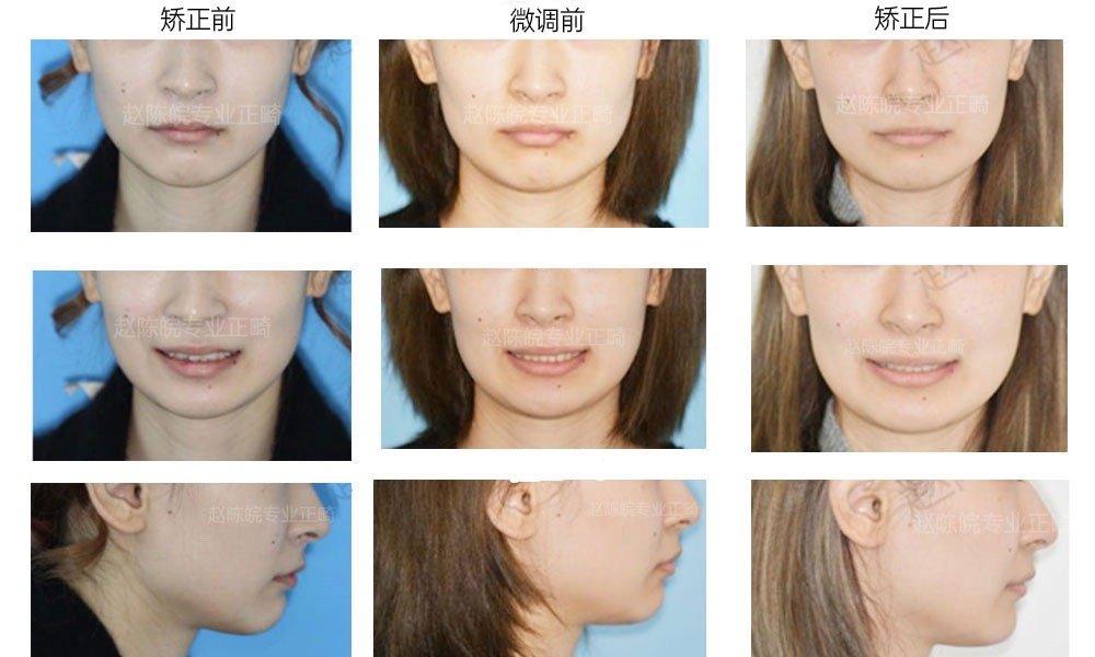 矯正前中后正面閉唇、露齒笑及側(cè)貌對比圖