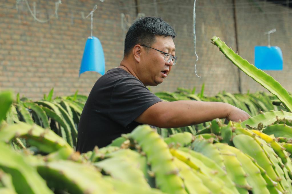 新華社西寧11月26日電(記者陳杰 王艷)初冬的高原草木漸黃,青海省黃南藏族自治州尖扎縣康楊鎮(zhèn)的一處種植園卻綠意盎然。眼下,大棚中掛滿枝條的火龍果進(jìn)入采摘期,白恒瑋頭頂草帽,穿行田壟間,剪果、裝筐,忙碌不停。