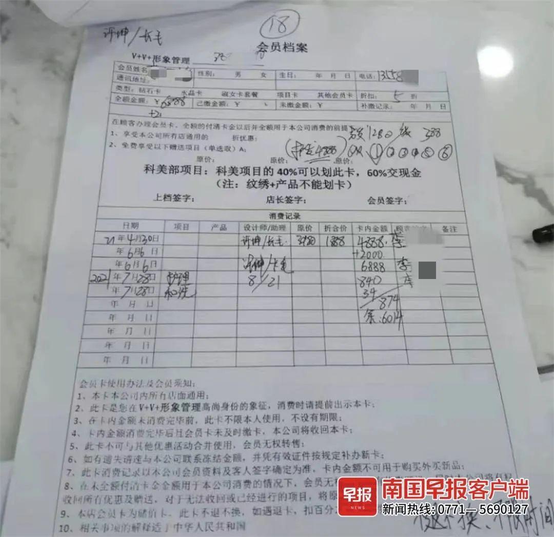 李女士說,造型做好后,她被告知要收取498元設計費。李女士原想付錢就離開,但禁不住勸說,又花費4888元辦理了充值會員卡。李女士說,當時好幾個店員圍著她推銷,感覺自己不充值便沒法離開。