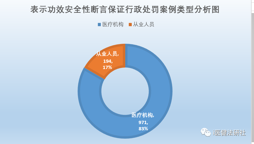 行政處罰對象為醫(yī)療機構(gòu)案件數(shù)量占比83%,處罰從業(yè)人員的占比17%。
