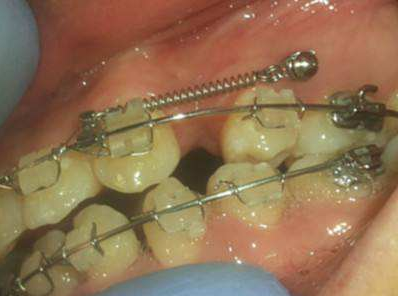 4.正畸前,牙縫過大,或是拔過牙,可利用植入骨釘來加強(qiáng)牙齒后退力量