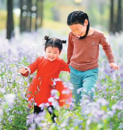 小朋友在山東省滕州市上善公園玩耍。 李志軍攝(新華社發(fā))
