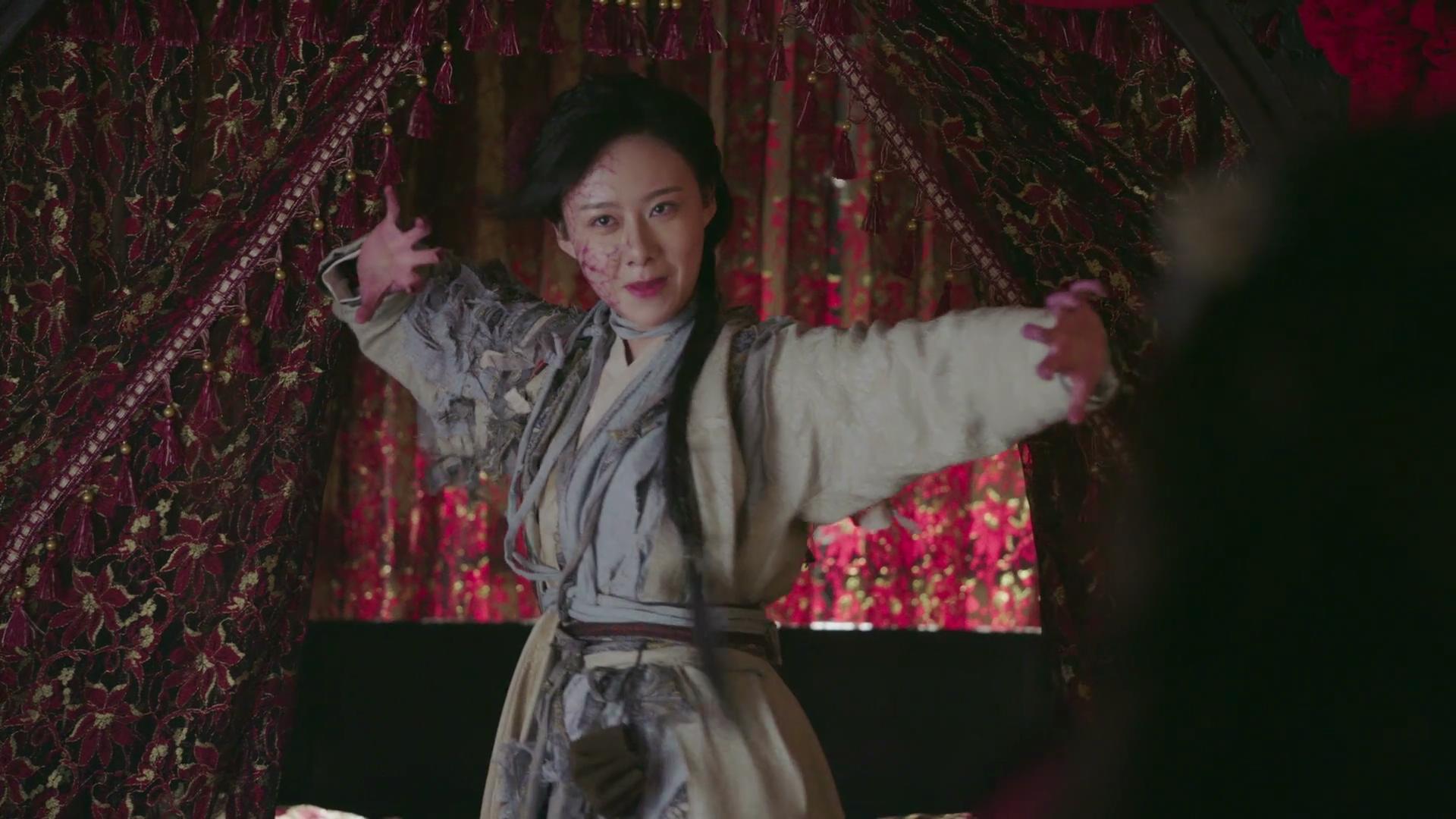 而且難得,這版殷離的妝容終于不是半張臉的整塊大疤了,而是盡量貼合原著所寫的整張臉凹凸不平。