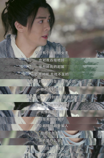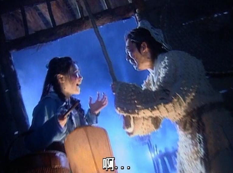 張檬(當(dāng)時叫張萌,與另一位女演員同名)的殷離蹦蹦跳跳的,活潑的像個多動癥兒童,說話和行動像個傻姑,不過倒也挺可愛,殷離身上自帶的邪性被表現(xiàn)了出來,就手下留情不截動圖了。