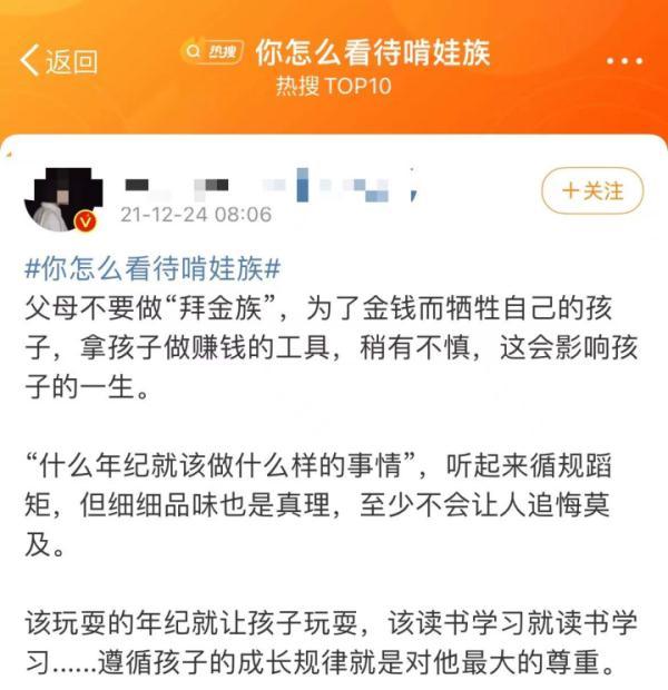 24日,#你怎么看待啃娃族#的話題也沖上了微博熱搜,很多網(wǎng)友對(duì)此發(fā)表了觀點(diǎn)。