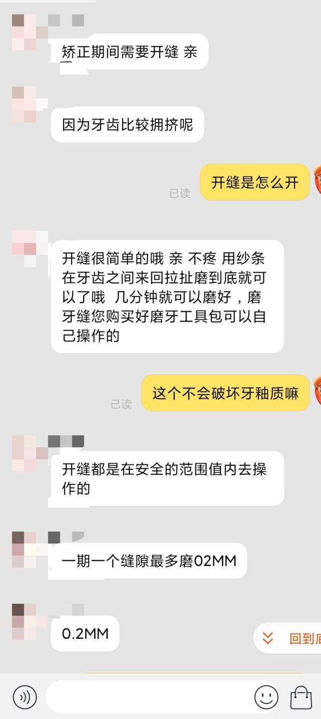 有商家打出“您只需咬個牙印”的廣告語,在河南商報記者根據(jù)商家要求提交牙齒情況自拍照之后,客服回復(fù):“您的牙齒矯正期間需要開縫,用紗條在牙齒之間來回拉扯到底,幾分鐘就好了”,隨后,客服推薦記者購買磨牙工具自己操作。