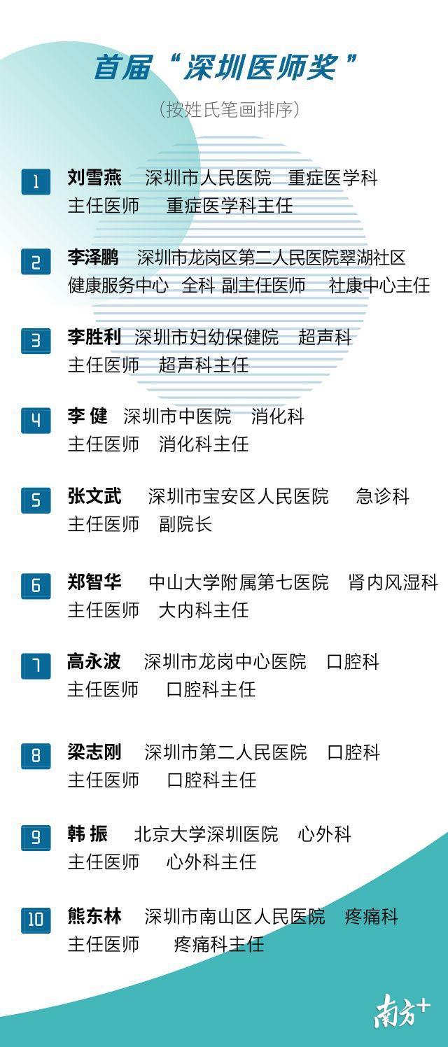 在獲得首屆“深圳醫(yī)師獎”的10位醫(yī)生中,有與死神賽跑的ICU醫(yī)生、不走尋常路的全科醫(yī)生、有火眼金睛能“照”出畸形胎兒的超聲科醫(yī)生、種口好牙無死角的口腔科醫(yī)生、能“神奇”經(jīng)口取石的消化科醫(yī)生…....他們行仁術(shù)、修醫(yī)德、重品行、有情懷,是深圳醫(yī)生的代表。