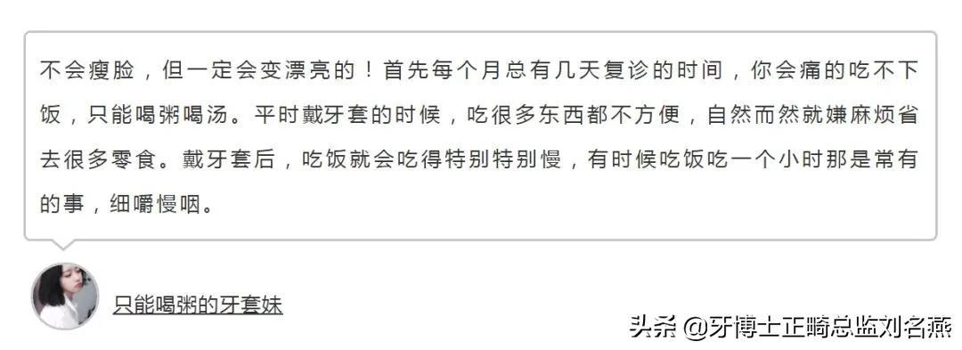 而對于成年人來說,臉型有沒有變小,臉有沒有變瘦,還是和你在矯正過程中是否因矯正而飲食受到影響有關的。如果沒有因為矯正而影響飲食,那么你想通過矯正瘦臉的愿望就只能泡湯了。