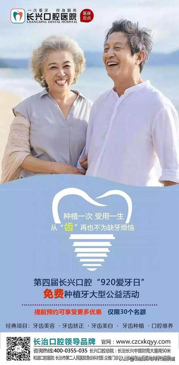 長興口腔第四屆免費種植牙大型公益活動即將開始,撥打愛牙熱線:400-0355-035(來源:長治長興口腔)