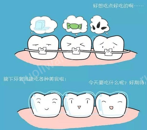 安了附件的那個(gè)牙齒用力比較大,移動(dòng)的過(guò)程中有偶爾出血的現(xiàn)象,需要清洗下。 2.隱形牙套確實(shí)方便,沒(méi)有口瘡沒(méi)有塞東西的煩惱 3.原本飯后就要漱口,現(xiàn)在就是刷牙下然后刷牙套也沒(méi)有很復(fù)雜,挺好的。 4.就是帶了牙套,雖然厚度是幾毫米,但是笑起來(lái)還是能看到嘴有點(diǎn)凸起,不過(guò)沒(méi)關(guān)系不嚴(yán)重。帶普通的牙套也得這樣。 5.從拔智齒開(kāi)始,到現(xiàn)在確實(shí)瘦了點(diǎn)。飲食.上沒(méi)有特別注意的,一般不是很硬的都能吃。只是拔牙那幾天自己在意,沒(méi)好好吃飯。