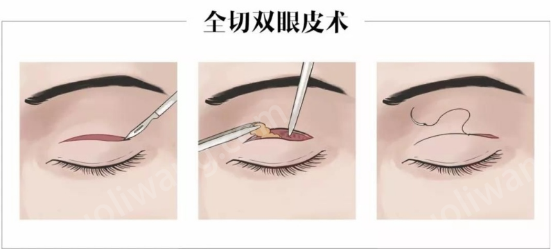 3、小切口:既具有全切優(yōu)點,又具有埋線優(yōu)點,切口比全切小,手術中可去除部分肌肉和脂肪,能解決腫泡眼問題,但缺點是手術中無法去皮。如果皮膚較松弛或腫眼泡較嚴重,不建議此種手術方式。