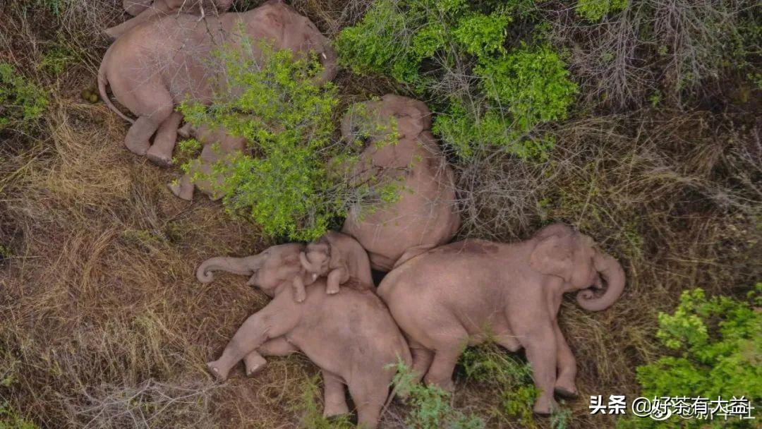 北移象群超萌睡姿 圖源:新華社