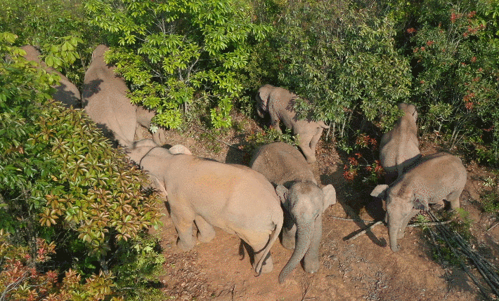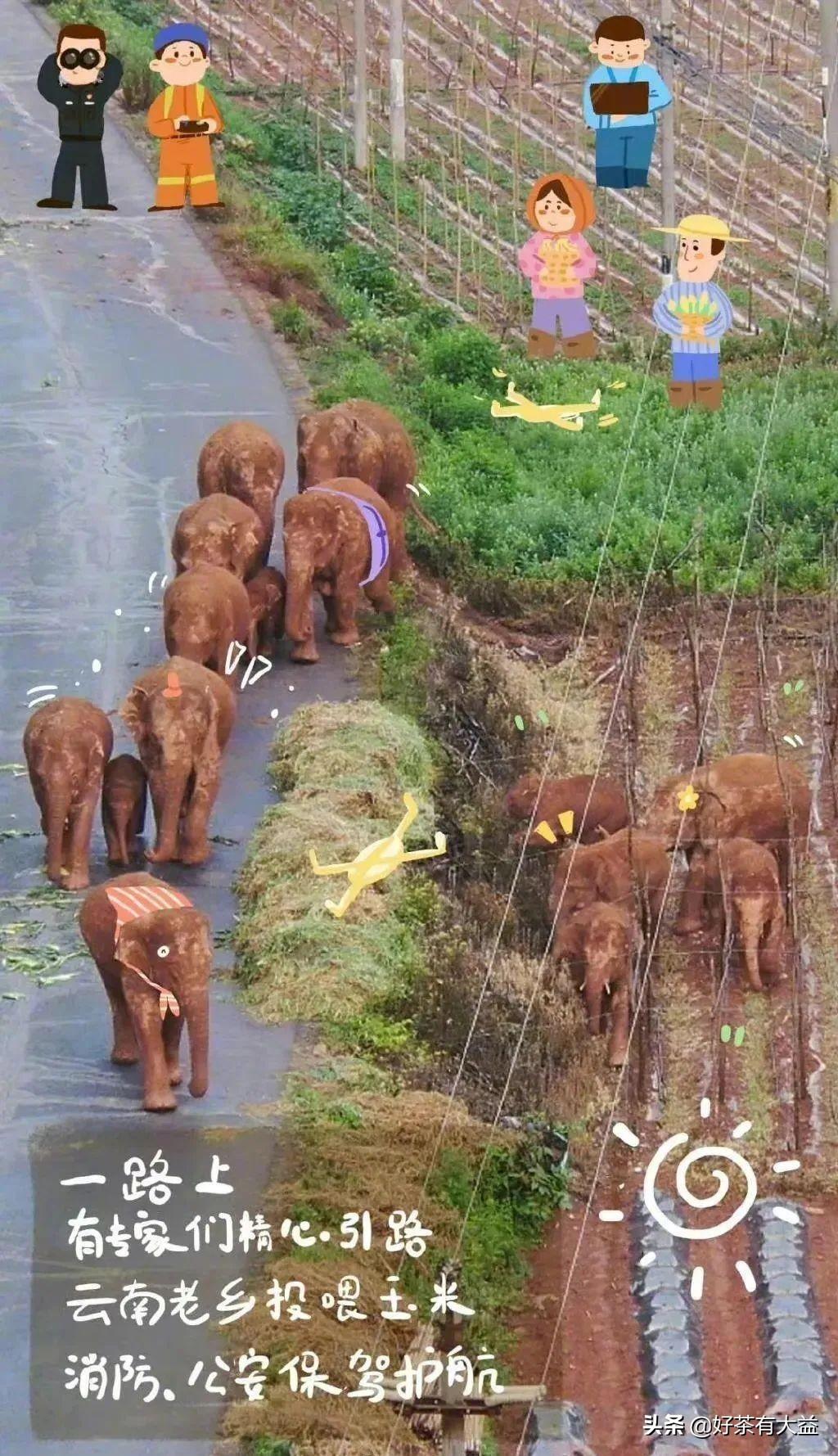在中國,美國,在歐洲和中東,在日本,韓國。世界的很多地方,人們熱切地關(guān)注著這群大象的動(dòng)態(tài),像追劇一樣追著大象的蹤跡。它們到哪里了?它們在干什么?它們要去哪里?