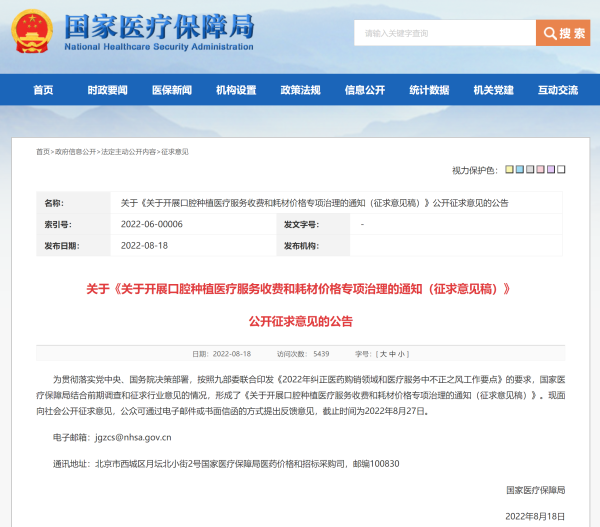 據(jù)悉,口腔種植領域收費不規(guī)范、費用負擔重等問題長期存在,隨著生活水平提高和人口老齡化程度加深,成為困擾群眾的民生痛點。今年3月以來,四川、陜西、江蘇、寧夏、山西等多個省份頻頻傳出種植牙集采相關的消息。此次《征求意見稿》明確了包括“集采”在內(nèi)的四個整改方向。一要規(guī)范口腔種植醫(yī)療服務和耗材收費方式,比如,公立醫(yī)療機構(gòu)提供口腔種植醫(yī)療服務,采取“服務項目+專用耗材”分開計價的收費方式;二是強化口腔種植等醫(yī)療服務價格調(diào)控,對于群眾反映強烈、費用負擔重的種植體植入費、牙冠置入費、植骨手術費應以降價為主;三是精心組織開展種植牙耗材集中采購,廣泛發(fā)動各級各類醫(yī)療機構(gòu)參加;四是實施口腔種植收費綜合治理,其中包括各地醫(yī)療保障部門要將價格投訴舉報較多、定價高于當?shù)仄骄?、拒絕或消極參與種植牙集采的各級各類醫(yī)療機構(gòu)列入價格異常警示名單,并每季度在當?shù)蒯t(yī)療保障局官方網(wǎng)站公開通報。