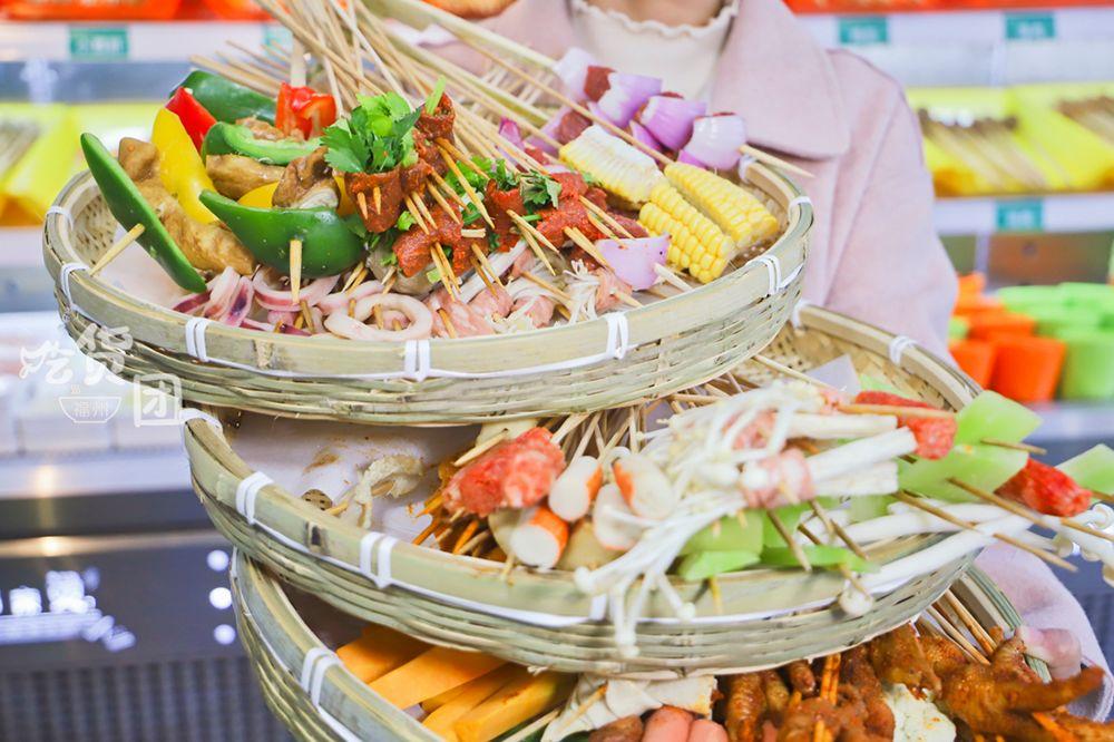 班花串串香有近百種串串涮品,串串葷素同價(jià)都是0.8元/根。加上5.8折只需要4毛6一根,媽耶這物價(jià)真是回到了從前!