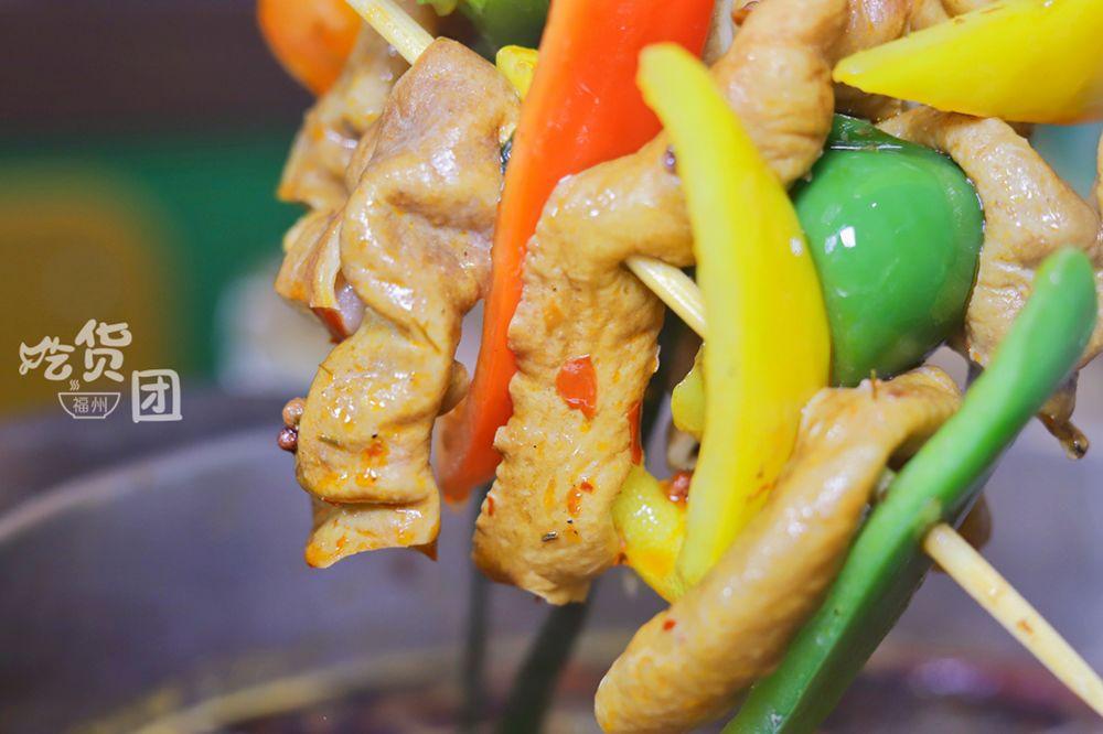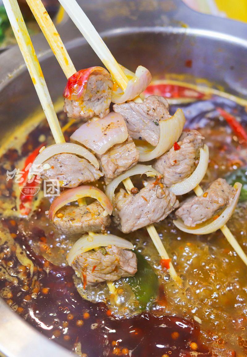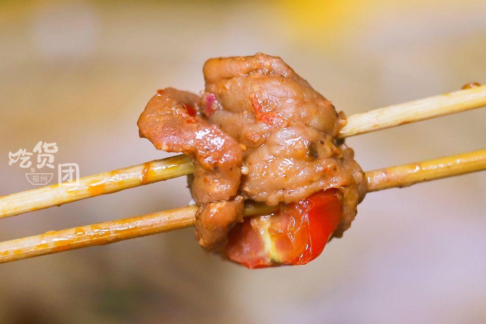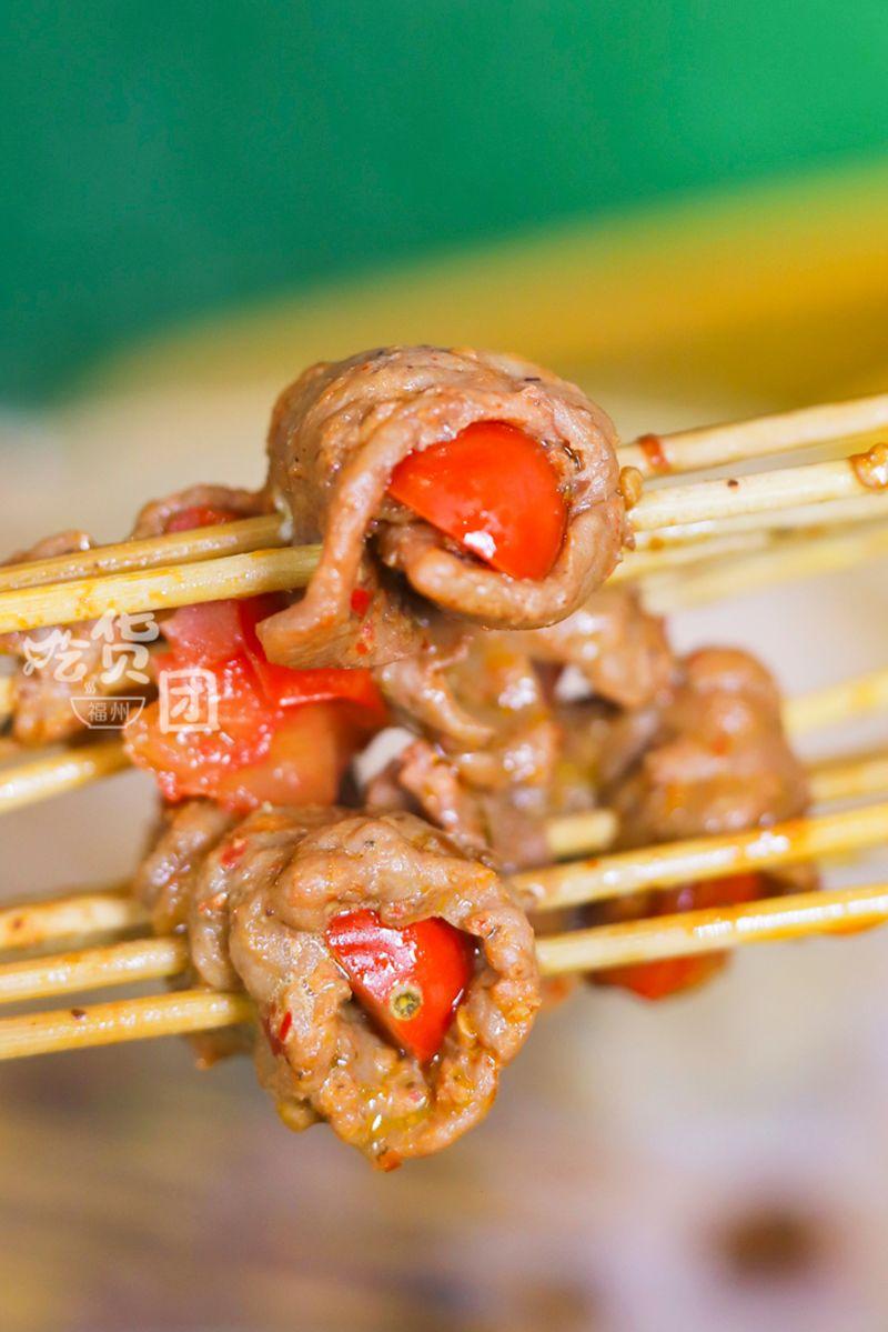 番茄牛肉是我在其他店沒見過(guò)的,涮熟時(shí)里面的番茄將將要爆汁,咀嚼時(shí)容易被豐腴的汁水燙得直哈氣,但卻又愛極了它香辣酸甜的味道,我們拿了足有30串還是不過(guò)癮。