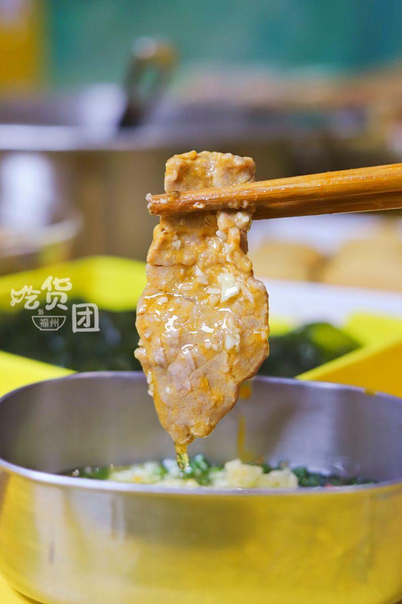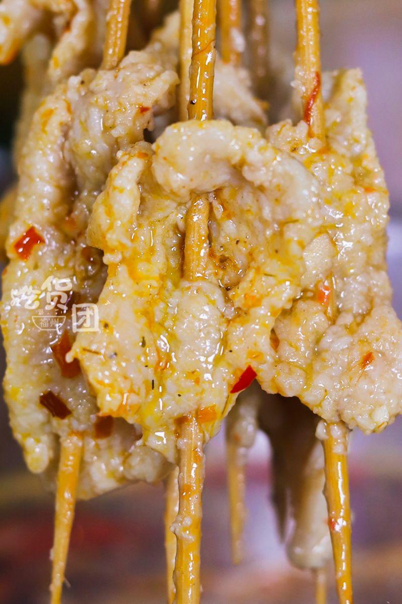 班花串串香特制的滑肉,用的是緊實(shí)的豬頸肉,外層裹上一層薄薄的地瓜粉,剛?cè)胱煊悬c(diǎn)像?;粯踊?,但吃著又特別有嚼勁。