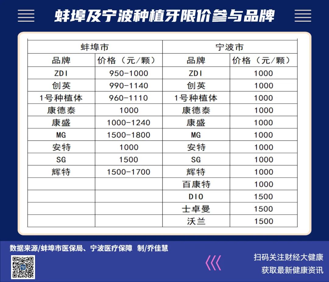 醫(yī)保限價(jià):蚌埠VS寧波繼寧波種一顆牙3000多元后,蚌埠也推出了自己的種植牙醫(yī)保限價(jià)。
