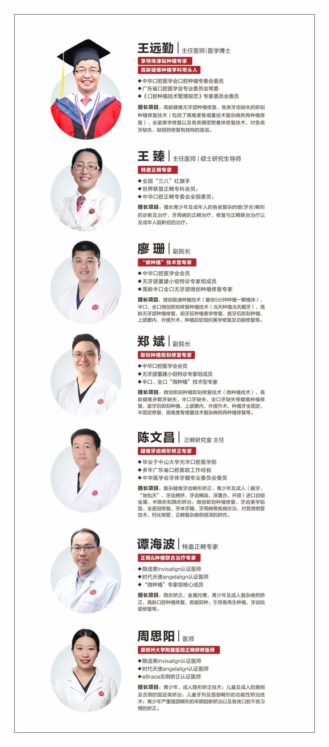 享特殊津貼種植專家王遠(yuǎn)勤博士、廣東省正畸專委會(huì)常委王臻主任領(lǐng)銜,廖珊副院長(zhǎng)、鄭斌副院長(zhǎng)、陳文昌主任、為技術(shù)核心,匯聚武漢大學(xué)、華西醫(yī)科大學(xué)、暨南大學(xué)、中山大學(xué)等高等院校口腔醫(yī)學(xué)畢業(yè)專家。其團(tuán)隊(duì)獲省級(jí)科學(xué)進(jìn)步三等獎(jiǎng)1項(xiàng)、市級(jí)科學(xué)進(jìn)步一等獎(jiǎng)2項(xiàng)、二等獎(jiǎng)1項(xiàng),臨床技術(shù)獲省、市相關(guān)部門支持和肯定。