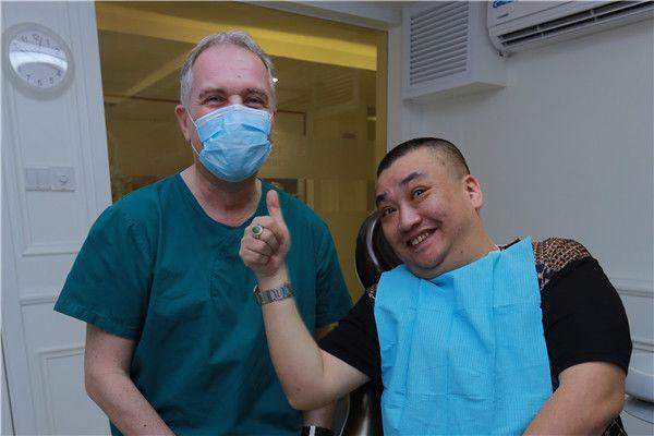 不到一個小時,陳堅雄的牙齒就種好了
