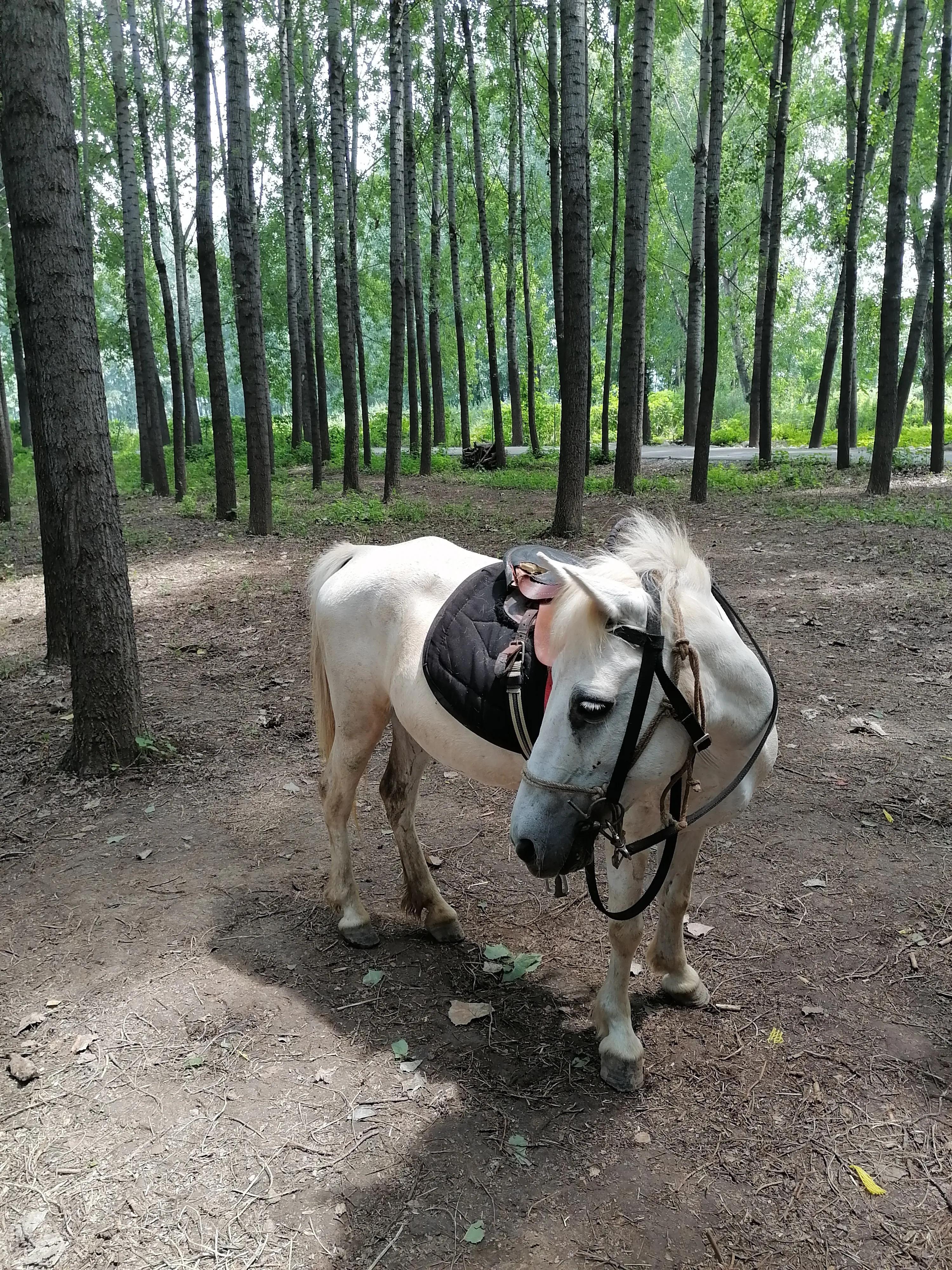 兔子們吃完了所帶的白菜和胡蘿卜,女兒將小道上的鴨子趕到了滿是浮萍的水中,看著鴨子劃出的波紋,女兒在身后吶喊著,手里還揮舞著撿來的樹枝。我們跨過一條溪流來到騎馬場,這里的馬是一種矮種馬,在教練的帶領(lǐng)下在林中穿梭,收費(fèi)自然也不便宜 ,兩圈60四圈100,女兒膽子太小都不敢上前,我們只能去其它地方轉(zhuǎn)轉(zhuǎn)。
