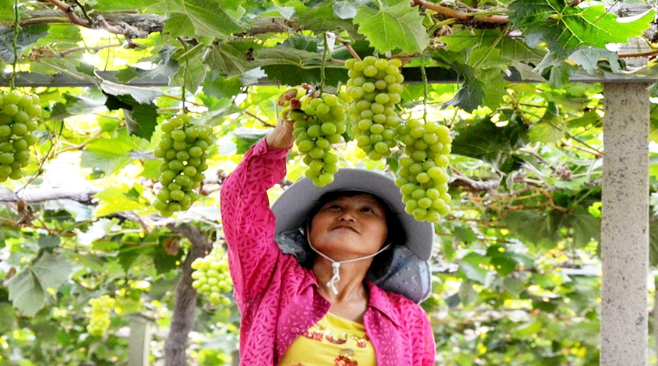杰美農(nóng)業(yè)科技有限公司是一家專門以葡萄種植、葡萄觀光、葡萄采摘等為主的觀光農(nóng)業(yè)。公司流轉(zhuǎn)土地500畝,總投資7800萬元。走進(jìn)杰美農(nóng)業(yè)科技有限公司記者看到,滿眼都是郁郁蔥蔥的葡萄架,空氣中散發(fā)著葡萄的香甜氣息,一串串葡萄晶瑩剔透,工人正在采摘葡萄。據(jù)這里的經(jīng)理彭東方介紹,基地種植的葡萄苗都是從省農(nóng)科院引進(jìn)的優(yōu)質(zhì)品質(zhì),有夏黑、陽光玫瑰、金手指、巨玫瑰等品種。由于葡萄種植基地毗鄰遂景大道,為了打造市民親近自然、觀賞田園風(fēng)光的佳去處,公司不僅邀請(qǐng)相關(guān)技術(shù)單位對(duì)種植園區(qū)進(jìn)行了規(guī)劃設(shè)計(jì),按照無公害農(nóng)產(chǎn)品和農(nóng)業(yè)標(biāo)準(zhǔn)化示范區(qū)的要求建設(shè),還和國(guó)內(nèi)知名農(nóng)科院所合作,常年聘請(qǐng)專家進(jìn)行技術(shù)指導(dǎo),努力將杰美農(nóng)業(yè)科技有限公司打造成為“遠(yuǎn)看是花園,近看是果園,走進(jìn)是樂園”的種植基地。