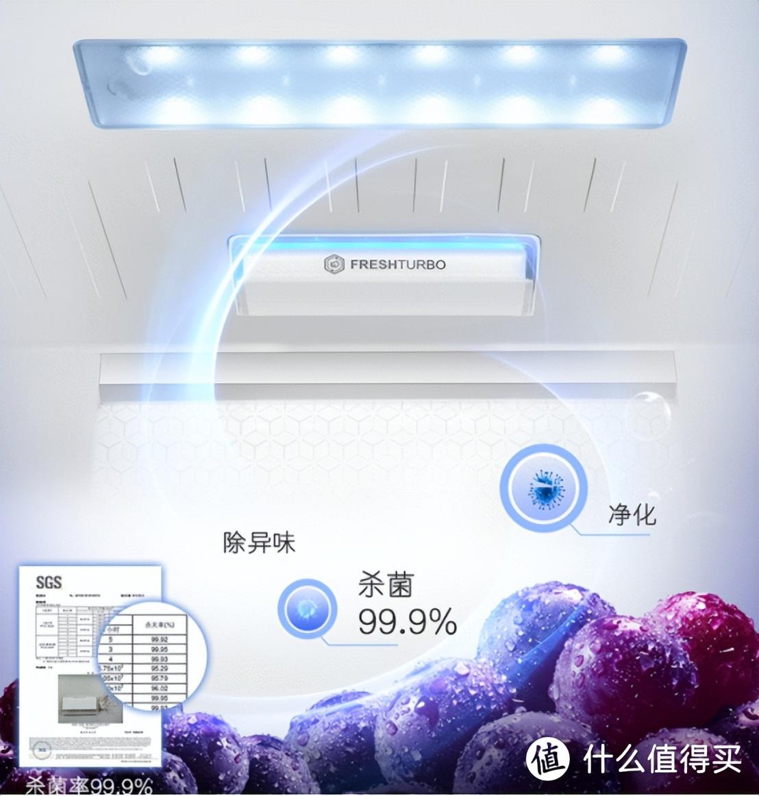 Fresh Turbo Pro智慧動態(tài)除菌:Fresh Turbo渦流動態(tài)殺菌進階版,除菌率達到了99.999%,除味率達到了99%,冷凍、冷藏和變溫室均具備6重除菌凈化。