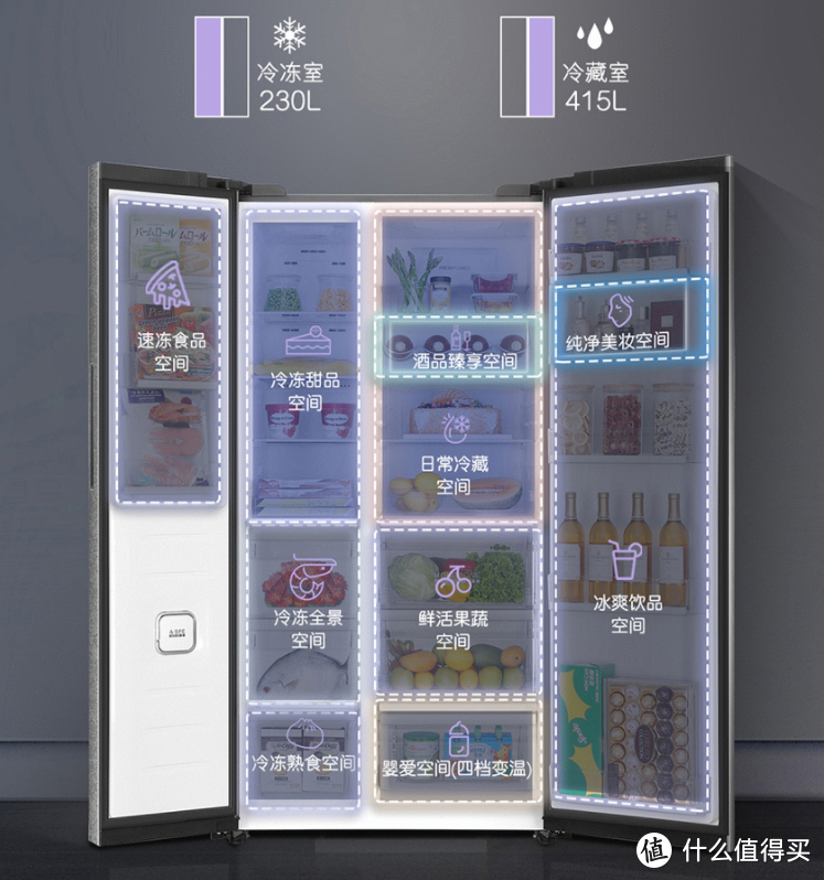 大容量囤鮮兩周食材細胞級養(yǎng)鮮雙重殺菌:Fresh Turbo渦流動態(tài)殺菌、A-SPE草本殺菌之所以選這款,就是一個字“大”,645L的超大容量,10大空間,真的是想裝什么就裝什么,不關(guān)你事裝2周的食材,甜品、化妝品、酒類、冷飲、母嬰類等等都能夠讓你輕松放入。