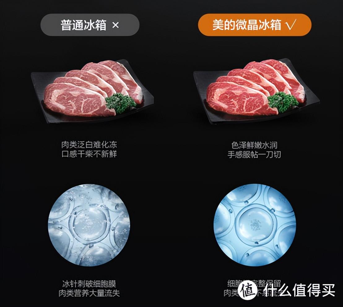 微晶一周鮮PST+智能除菌雙循環(huán)系統(tǒng)推薦完超薄458、凈味508,我們再來說一說微晶一周鮮501,微晶一周鮮作為美的特有的技術(shù),能夠根據(jù)食材定制特定的保鮮方案,讓食材始終保持微晶狀態(tài),使得肉類7天不凍保持原鮮。