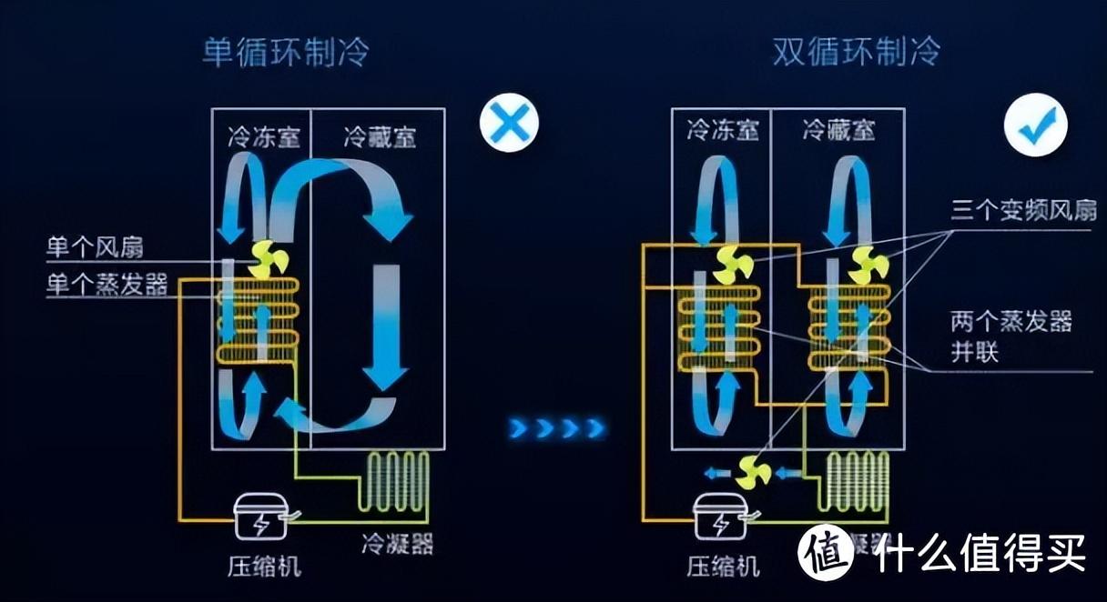 3.單雙循環(huán)那些坑風冷冰箱的串味問題主要是靠制冷系統(tǒng)來輔助,如果冰箱是單循環(huán)系統(tǒng),串味大、溫控不穩(wěn)定,雙循環(huán)系統(tǒng)則由于是冷藏室和冷凍室單獨運行,這樣就解決了串味和溫控的問題。