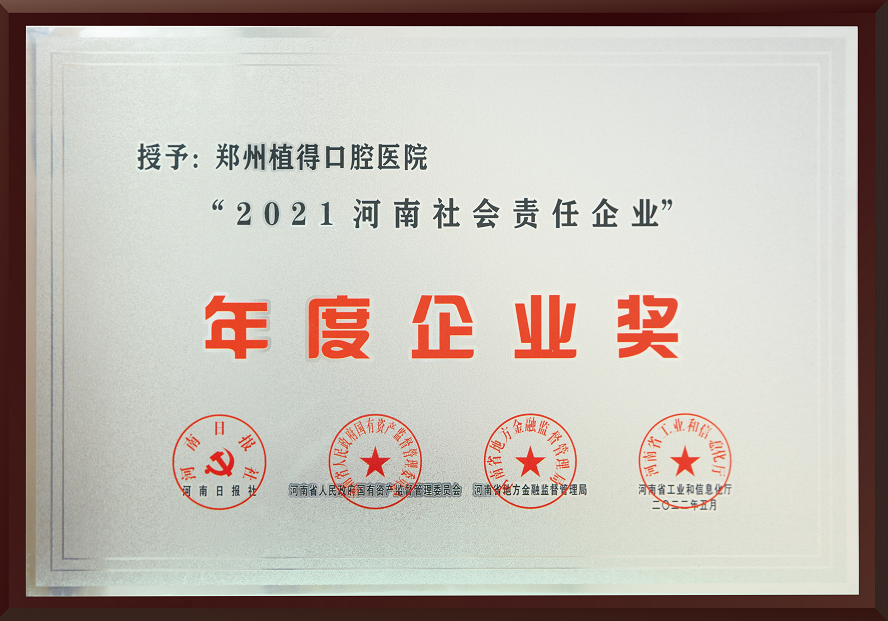 2022年7月2日,“2021河南社會責(zé)任企業(yè)暨社會責(zé)任突出貢獻(xiàn)企業(yè)家頒獎盛典”在鄭州黃河迎賓館召開。鄭州植得口腔醫(yī)院歷經(jīng)層層嚴(yán)格選拔,從400多家企業(yè)中脫穎而出,憑借其深耕口腔行業(yè)、堅守品質(zhì)醫(yī)療、持續(xù)履行社會責(zé)任,斬獲“2021河南社會責(zé)任企業(yè)”殊榮。