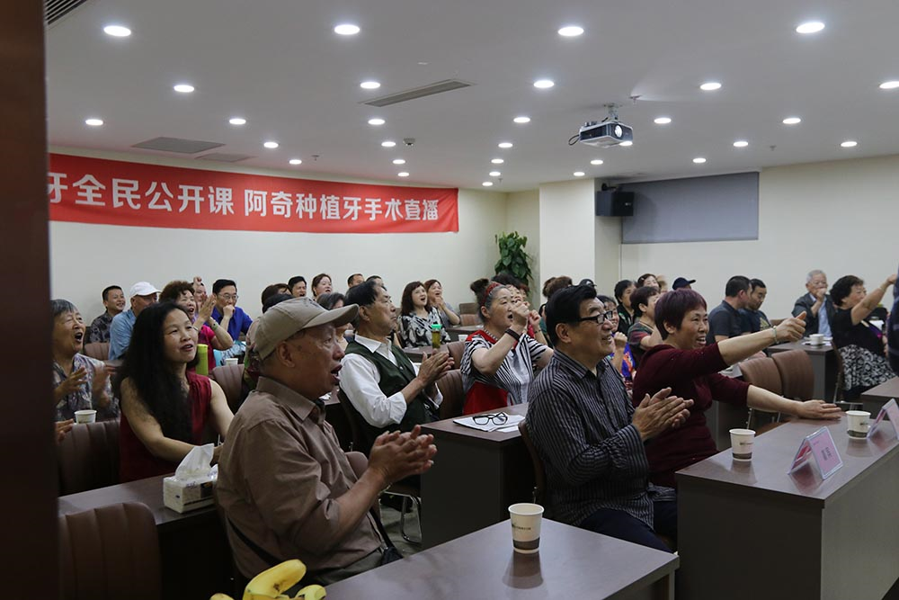 此次阿奇種牙由湖州牙博士樸東信院長主刀,親自診斷、手術,制定種植方案,并進行了種植,種植過程不到10分鐘,大爺大媽看的目瞪口呆、連連拍手叫好。
