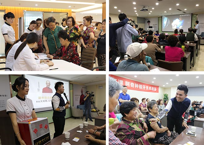 今天的湖城刮風下雨,大爺大媽們的熱情一點未減退。活動現場,牙博士口腔特邀種植牙專家為在座賓客做種植牙知識科普,進行有獎互動。術后,阿奇來到活動現場互動,大爺大媽們的熱情高漲。