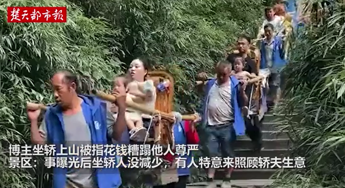近日,有博主發(fā)布了自己在重慶市天生三橋景區(qū)坐轎子上山的視頻,遭部分網(wǎng)友譴責:“大家都生而為人,你憑什么花錢踐踏轎夫的尊嚴?”