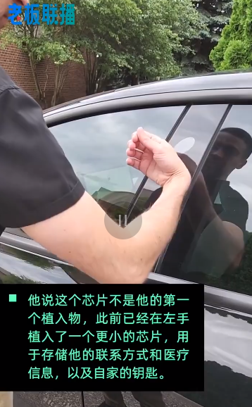 一位特斯拉車主在右手植入了一枚微型芯片,實現(xiàn)自由解鎖汽車。