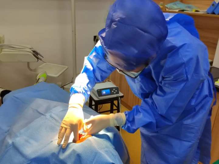 昨天下午,在完成各項準備工作后,陳冰主任對患者進行牙種植手術,現(xiàn)場團隊成員全程密切配合。