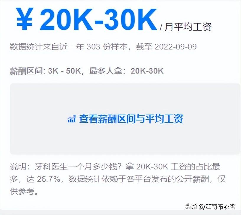 4.坐標(biāo):一線城市,三甲公立醫(yī)院,有納稅記錄的,口腔科醫(yī)生稅后年收入25-70萬,主任級(jí)估計(jì)百萬以上??剖抑髦渭?jí)醫(yī)生被民營機(jī)構(gòu)挖走不少,口腔內(nèi)科或口腔全科民營機(jī)構(gòu)開價(jià)月工資3萬,正畸、種植保底月工資5-8萬。