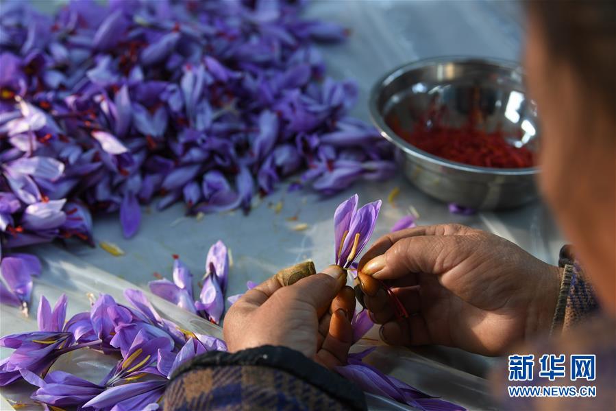10月29日,貴州省黔東南苗族侗族自治州岑鞏縣羊橋土家族鄉(xiāng)祝壩村,村民在擇取西紅花花絲。新華社發(fā)(蔡興文 攝)