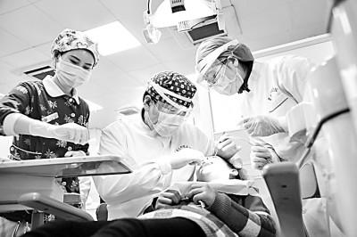 在空軍軍醫(yī)大學(xué)口腔醫(yī)院,口腔預(yù)防科醫(yī)生正在做口腔診療。新華社發(fā)