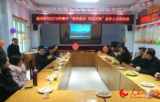 “回來啦!過年好!過年好!”大老遠(yuǎn)的,南嶺新村黨總支書記李國振扯著嗓門招呼道。緊接著,哈著熱氣的寒暄和濃濃的鄉(xiāng)情交織在一起。從北京、上海、云南、浙江、鄭州等地回家過年的南嶺返鄉(xiāng)人紛紛匯聚過來。鞏義市小關(guān)鎮(zhèn)黨委書記白東升、鎮(zhèn)長許火炎也來了,河南省委編辦駐南嶺新村第一書記趙曉紅驅(qū)車兩個(gè)多小時(shí),也從新鄉(xiāng)趕來參加“情系南嶺,共謀發(fā)展”返鄉(xiāng)人才的座談會。