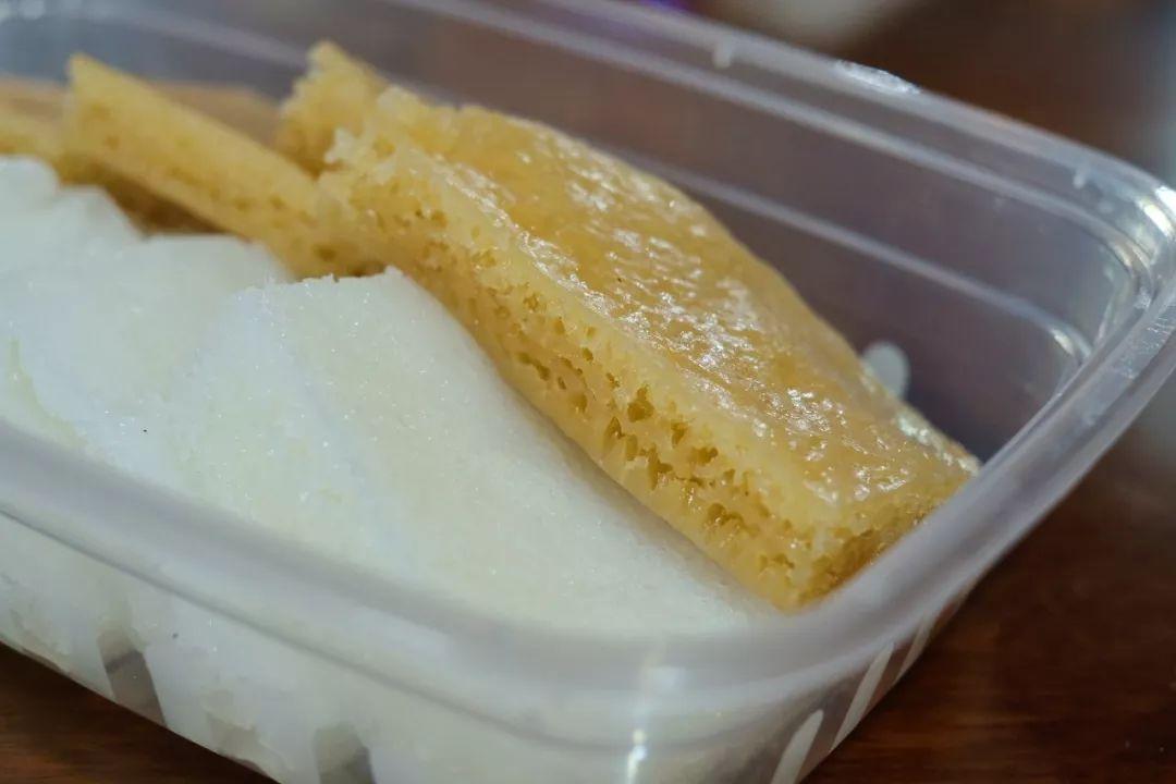 歡姐的輪教糕,表面油潤(rùn)光潔,糕內(nèi)有橫豎相間的漂亮晶花,配得上“豬油膏,橫直眼”六個(gè)字。