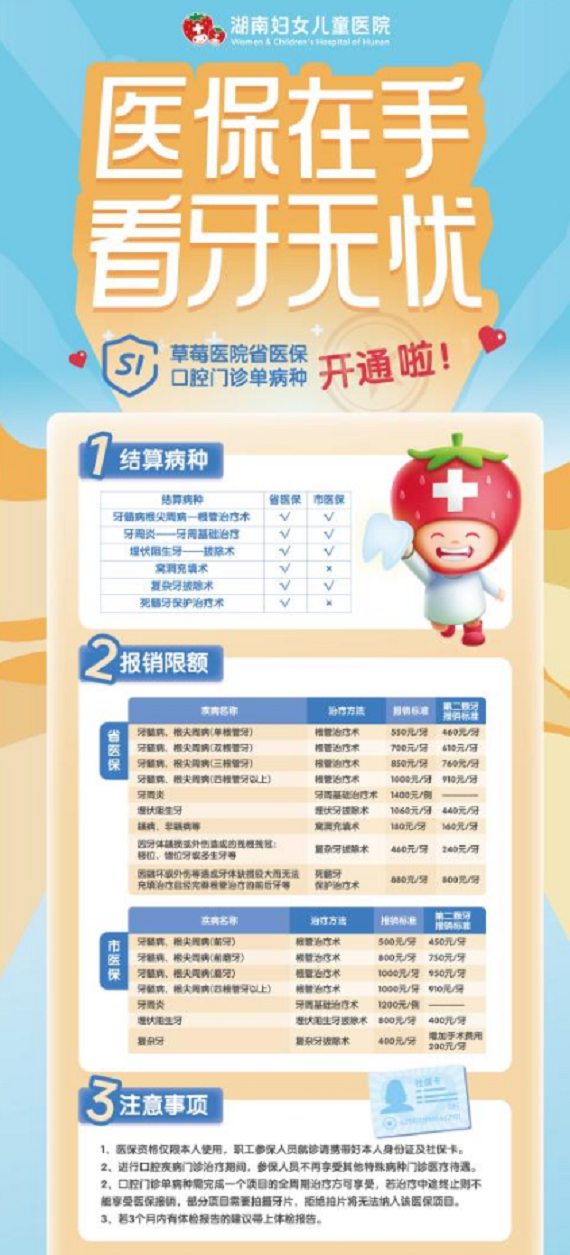 醫(yī)生:可以的,湖南婦女兒童醫(yī)院為湖南省、長沙市口腔門診單病種醫(yī)保定點(diǎn)的三級醫(yī)院,有口腔對應(yīng)疾病煩惱的患者可以針對“省醫(yī)保6個(gè)單病種”和“市醫(yī)保4個(gè)單病種”,在醫(yī)院使用醫(yī)保報(bào)銷。