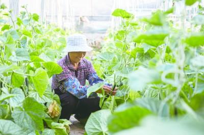 村民正在金碩農(nóng)業(yè)生態(tài)園扶貧共享大棚內(nèi)勞作