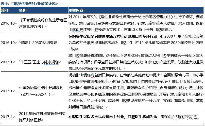 政策面持續(xù)支持國內(nèi)口腔醫(yī)療行業(yè)發(fā)展,推動牙科醫(yī)生供給改良。2016年以來,層面出臺一系列口腔醫(yī)療相關(guān)政策,以促進口腔醫(yī)療行業(yè)發(fā)展,提高人民口腔醫(yī)療健康水平。