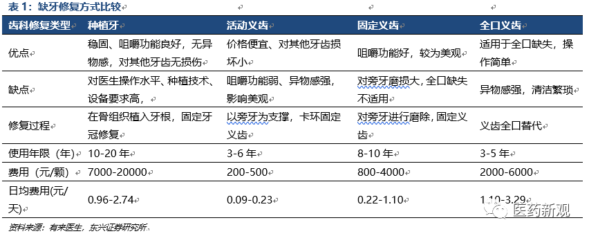種植牙的修復(fù)果優(yōu)。通過比較當前常用的4種牙齒修復(fù)方式來看,種植牙具有植入后牙齒穩(wěn)固、咀嚼功能良好,患者無異物感,且對其他牙齒無損傷,舒適且美觀,使用年限達到約10-20年,但是種植牙的修復(fù)過程中,對操作醫(yī)生、設(shè)備具有更高的要求,且單顆種植牙的價格較高,患者費用負擔較大。