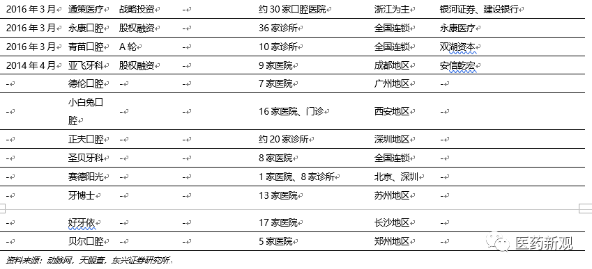 口腔行業(yè)融資熱度依舊。由于我國潛在消費人群基數(shù)大,隨著國內(nèi)居民口腔醫(yī)療消費的升級,口腔醫(yī)療行業(yè)的巨大發(fā)展空間持續(xù)釋放,同時,層面也出臺相應(yīng)政策鼓勵社會資本辦醫(yī),投資機構(gòu)紛紛深入布局。