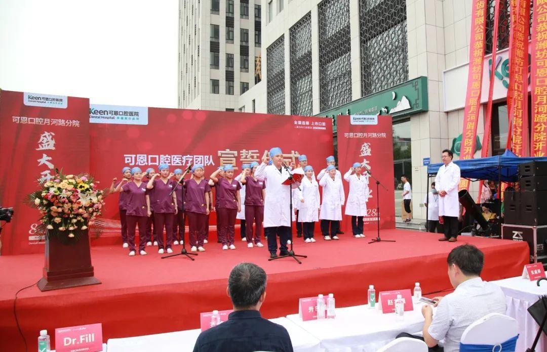 在期待與祝福中,與會(huì)嘉賓上臺(tái)共同啟動(dòng)新院開業(yè)盛典,濰坊可恩口腔醫(yī)院月河路分院盛大開業(yè)!