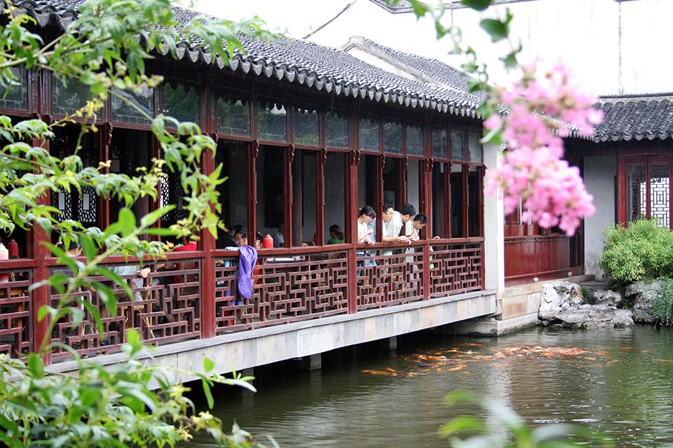 和別處茶館相比,蘇州茶館的大優(yōu)勢(shì)就是身處蘇州園林。圖為藝圃茶館。 (IC photo/圖)
