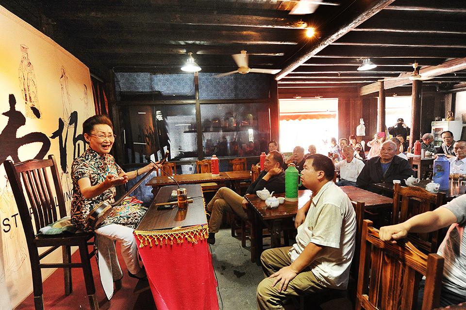 一邊喝茶,一邊聽評(píng)彈,是蘇州人的雅興。 (IC photo/圖)